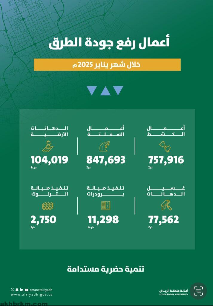أمانة منطقة الرياض تعزز جودة الطرق بتنفيذ أعمال صيانة شاملة في يناير 2025
