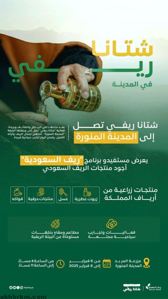 تنطلق اليوم فعالية “شتانا ريفي” في مزرعة المريد بالمدينة المنورة، حيث تستمر لمدة ثلاثة أيام، بهدف تسليط الضوء على جمال الريف السعودي ومنتجاته الفريدة. وتأتي هذه الفعالية بعد النجاحات الكبيرة التي حققتها في الرياض، الطائف، وبريدة، حيث استقطبت آلاف الزوار وساهمت في تعزيز الاهتمام بالمنتجات الريفية السعودية .