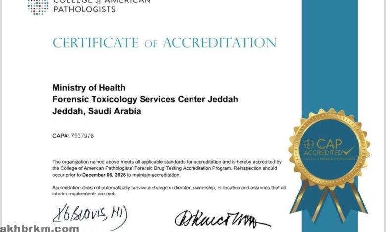 تجديد اعتماد الجمعية الأمريكية لمركز خدمات السموم الشرعيه بجدة