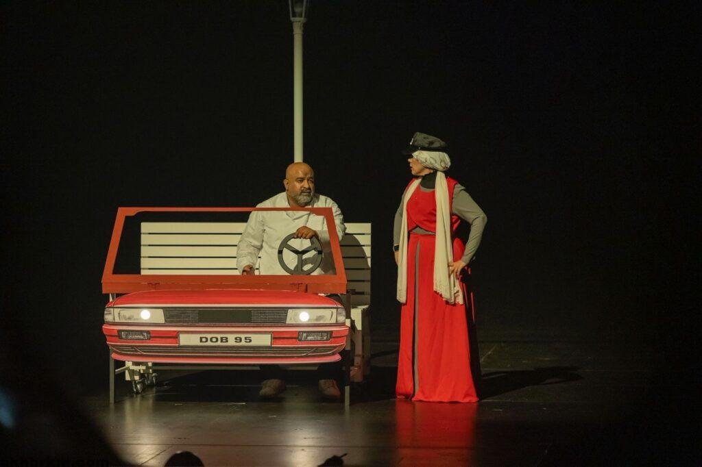وفي حفل الافتتاح تم الإعلان عن الشخصية المكرمة لهذا العام: عبد العزيز السماعيل، تكريمًا لمسيرته الطويلة والاحتفاء بمساهماته في تطوير المشهد المسرحي المحلي، تلا ذلك عرض عمل مسرحي مستضاف من سلطنة عمان بعنوان “العاصفة” والذي تدور أحداثه عن شخصين يعملان في ورشة خياطة ويعانيان من الملل والرتابة فيقرران تنظيم عمل مسرحي تدور أحداثه على متن سفينة تواجه عاصفة هائلة.