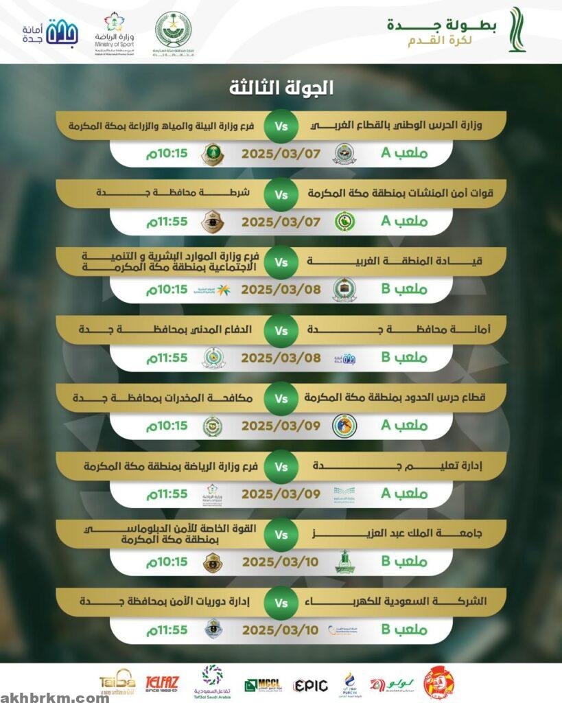 وتضم المجموعة الثالثة فريق قطاع حرس الحدود بمنطقة مكة المكرمة، وإدارة تعليم جدة، وفرع وزارة الرياضة بمنطقة مكة المكرمة، مكافحة المخدرات بمحافظة جدة.