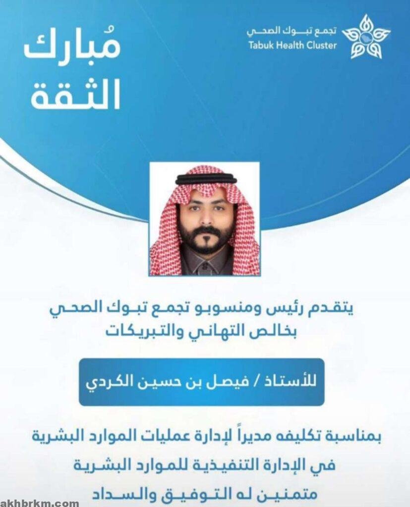 الاستاذ فيصل بن حسين الكردي مديراً لإدارة عمليات الموارد البشرية بتجمع تبوك الصحي