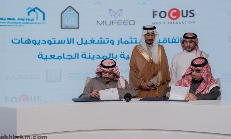 شركة مفيد توقع اتفاقية تشغيل واستثمار الاستوديوهات الإعلامية التابعة لجامعة الإمام لمدة 3 سنوات
