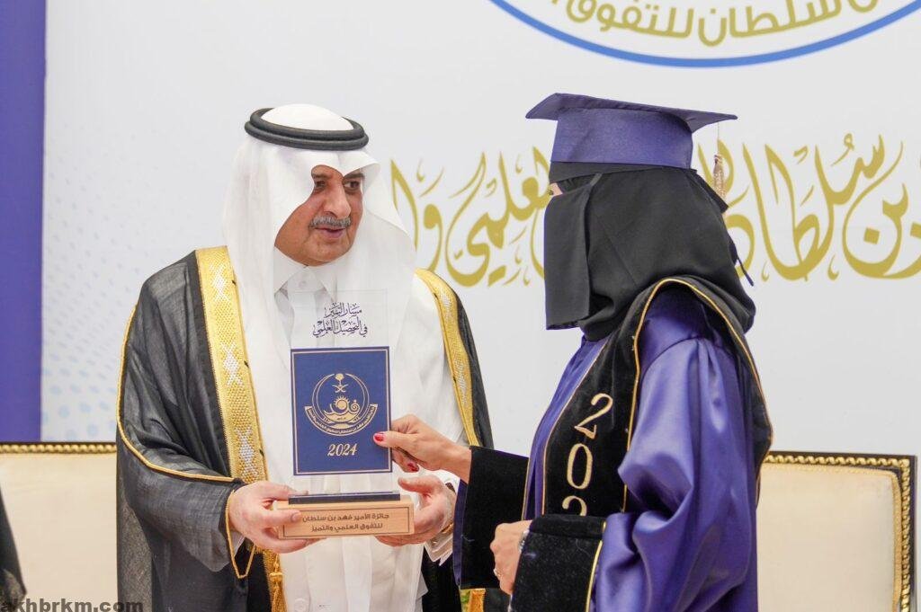 ثم كرم سموه الفائزين والفائزات في مجال التفوق العلمي البالغ عددهم ( 34 ) فائزاً وفائزة، متمنياً سموه لهم دوام التوفيق والسداد، في خدمة دينهم ثم مليكهم والوطن.