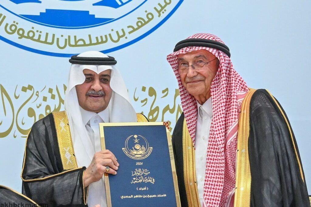 كرم سموه صبيح بن طاهر المصري نظير إسهاماته في العديد من المجالات المجتمعية والخيرية إلى جانب إسهاماته في القطاع التعليمي والصحي بالمنطقة،