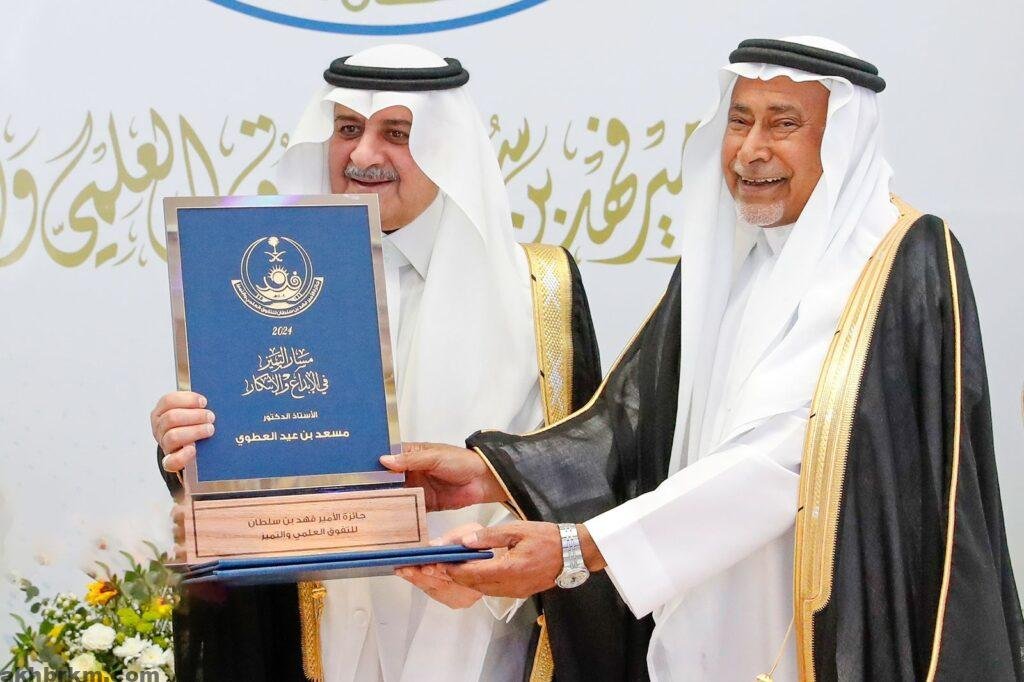 كرم سموه الدكتور مسعد بن عيد العطوي نظير إسهاماته في العديد من المجالات الإبداعية العلمية والثقافية، حيث يُعد أحد أبرز أدباء المملكة العربية السعودية المعاصرين. وصدر له مجموعة من المؤلفات التي تُعنى بتاريخ منطقة تبوك قديمًا وحديثًا،