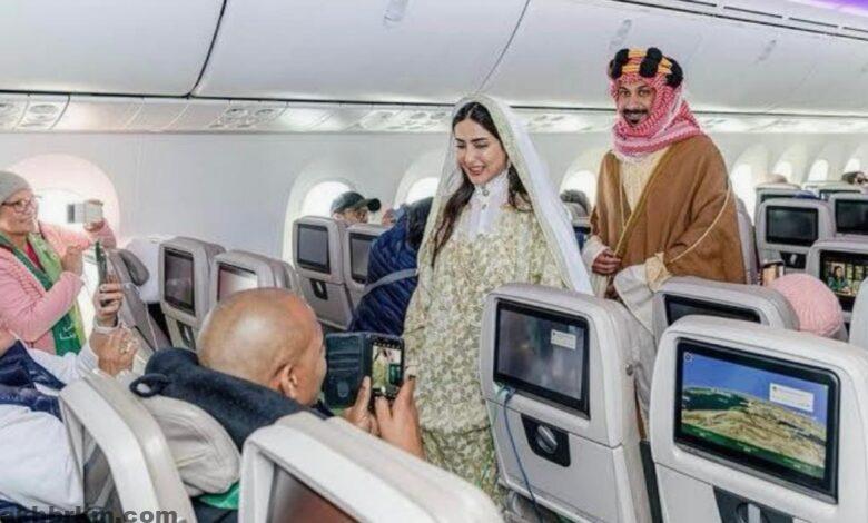 وعلى متن الطائرة، استمتع الركاب بمشاهدة عمل فني يعكس التراث السعودي، كما تلقوا هدايا مصنوعة يدويًا من قبل حرفيي “وِرث”، تمثلت في أساور مستوحاة من قيطان البشت السعودي، مما يجسد الإبداع الفني في الحرف التقليدية.