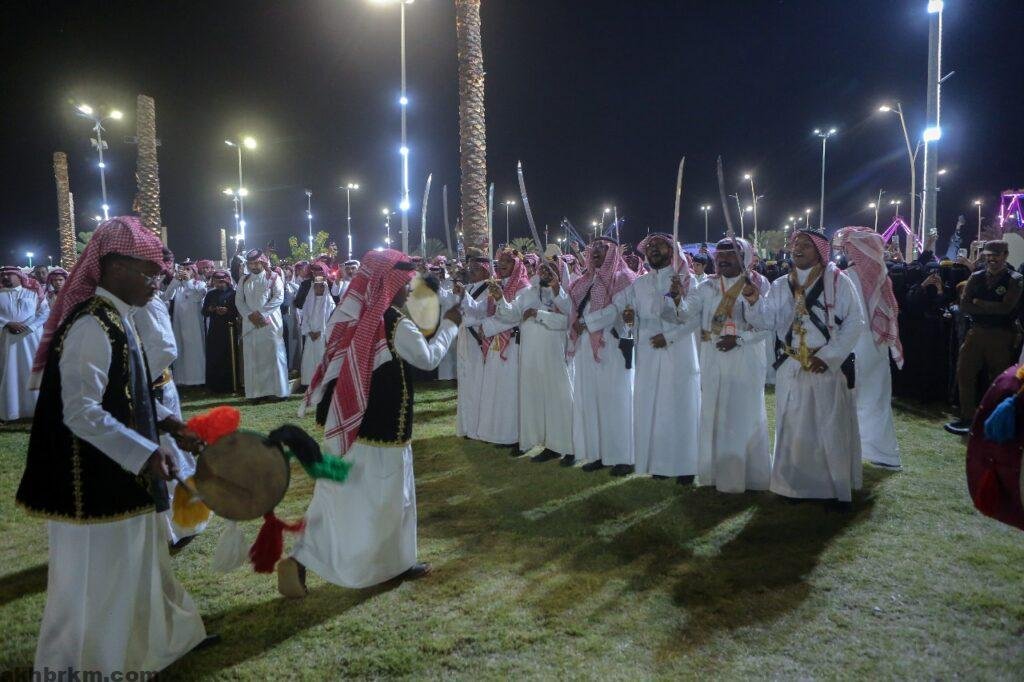 وتضمنت فقرات الاحتفال قصيدة شعرية بالمناسبة، وأداء العرضة السعودية، وجولة على الأركان المشاركة من مختلف الجهات شملت محميتي عروق بني معارض والهضب، والمستشفى العام، والدفاع المدني، وبنك التنمية، وأركان الأسر المُنتجة، بالإضافة الى ديوانية العشاش، ومركز النشاط الاجتماعي في الزويراء الذين شاركوا بنماذج من الفلكلور الشعبي، وتقديم نماذج من الموروث الثقافي للمحافظة بالإضافة إلى عرض العديد من القطع القديمة التي كان يستخدمها الأجداد والآباء في حقبة زمنية مضت.