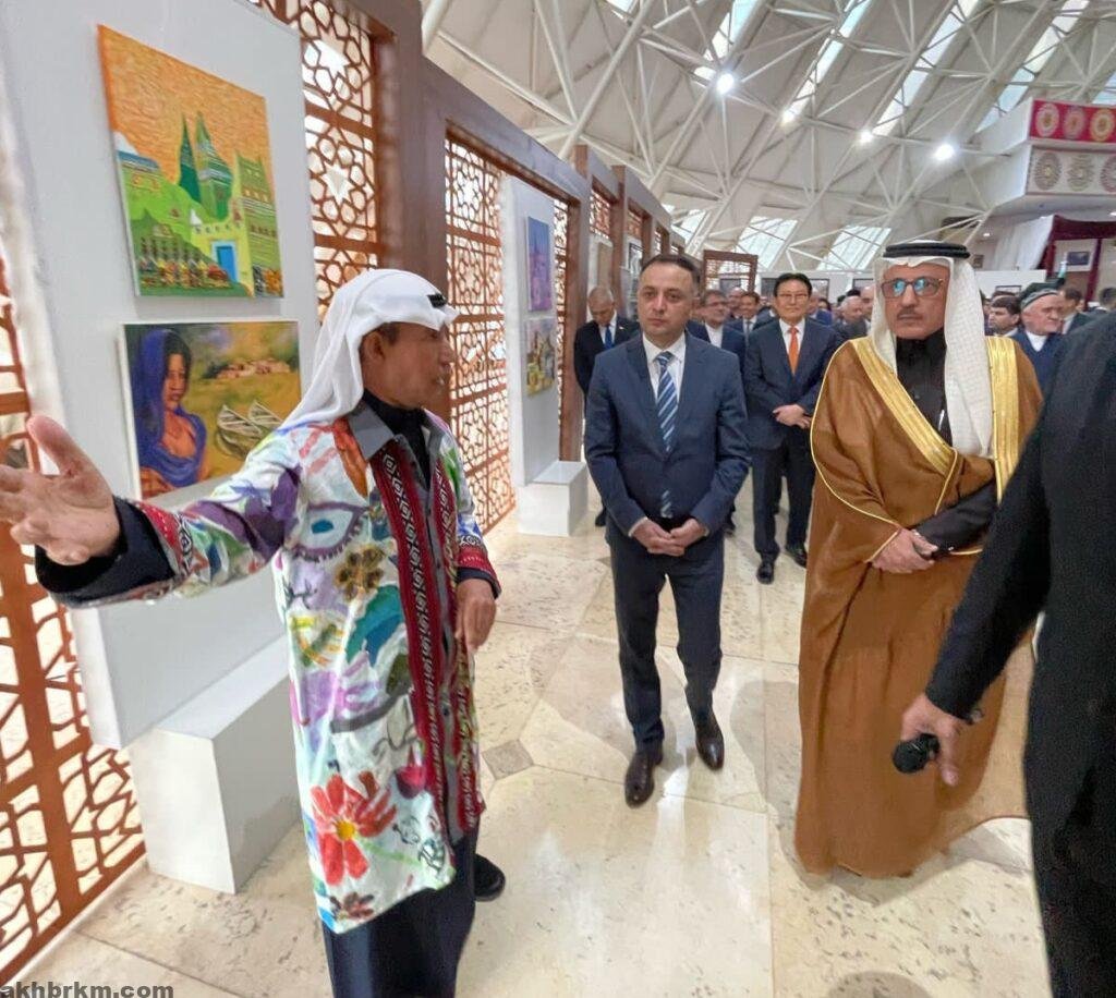 والباقة الثالثة لوحة الدرعية إلى فضيلة مفتي جمهورية طاجيكستان الشيخ سعيد مكرم عبدالقادر.
