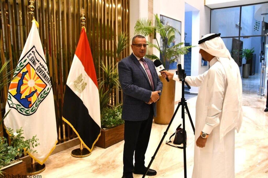 وكشف المحافظ لوسائل الإعلام العربية عن استراتيجية التنمية والتطوير الشامل التي وضعت لوضع خطط التنمية الشاملة والمستدامة والمتساوية لكل مدن المحافظة التسع على مسافة واحدة،وانه قد تم الانتهاء من تقسيم المحافظة الى خمس نقاط تنموية ؛للاستفادة من كل الميزات والإمكانيات الهائلة التي تتميز بها محافظة جنوب سيناء إلى قطاع راس سدر كبوابه داخلية للمحافظة واستقبال المواطنين فيها واستحداث المشروعات التنموية المتعددة فيها،والقطاع الثاني منطقة ابو زنيمة وابو رديس والتركيز على الصناعات المعدنية والمحجرية والبترولية المعززة للاقتصاد الوطني ،ثم القطاع الثالث منطقة سانت كاترين والطور وما تمتلكة من إمكانيات دينية وتاريخية عالمية تشمل كافة الديانات السماوية وجبل التجلي،ثم القطاع الرابع يشمل شرم الشيخ ودهب كمركز عالمي للسياحة القاخرة ،واخيراً القطاع الخامس الذي يضم نويبع كمركز لوجستي عالمي يستطيع تلبيه متطلبات دول الجوار للتصدير والنقل الى أوروبا،