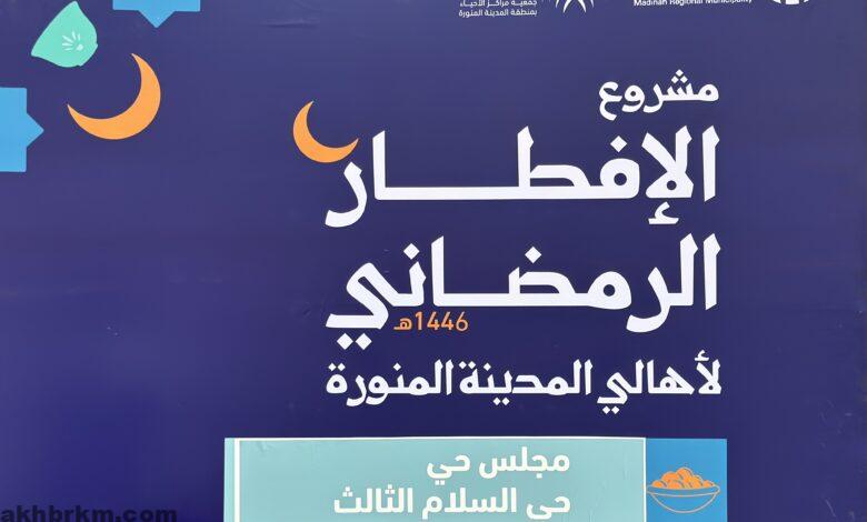 ويُعد برنامج الإفطار الرمضاني الذي تشرف عليه جمعية مراكز الأحياء بمنطقة المدينة المنورة (مجتمعي) من أكبر المبادرات المجتمعية في المنطقة، إذ يغطي 82 موقعًا في الأحياء، ساعيًا إلى تعزيز الروابط الاجتماعية، ونشر روح التعاون والمشاركة بين أفراد المجتمع.