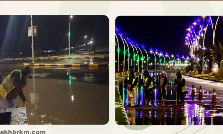 وقام “الجباب” بتوجية الفرق الميدانية بجولة تفقدية على أماكن تجمع المياه بجميع الأحياء ومتابعة سحب مياه الأمطار المتجمعة بالمناطق غير المخدومة بشبكات تصريف مياه الأمطار، كما يجري العمل حاليًا بكامل طاقة البلدية لسرعة سحب مياه الأمطار بدءاً بالطرق الرئيسية.