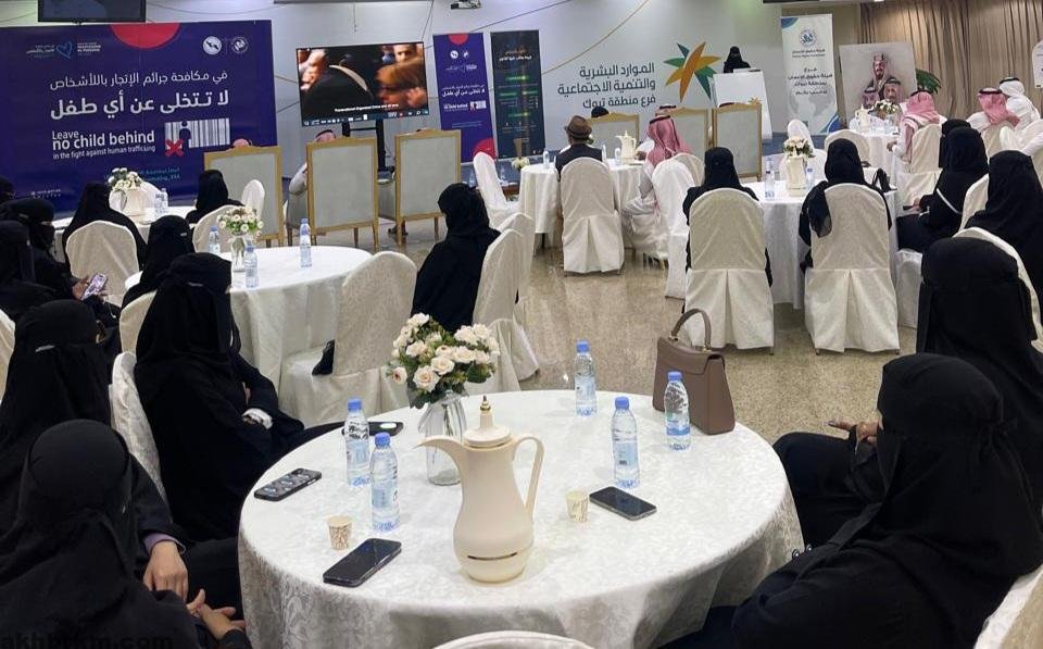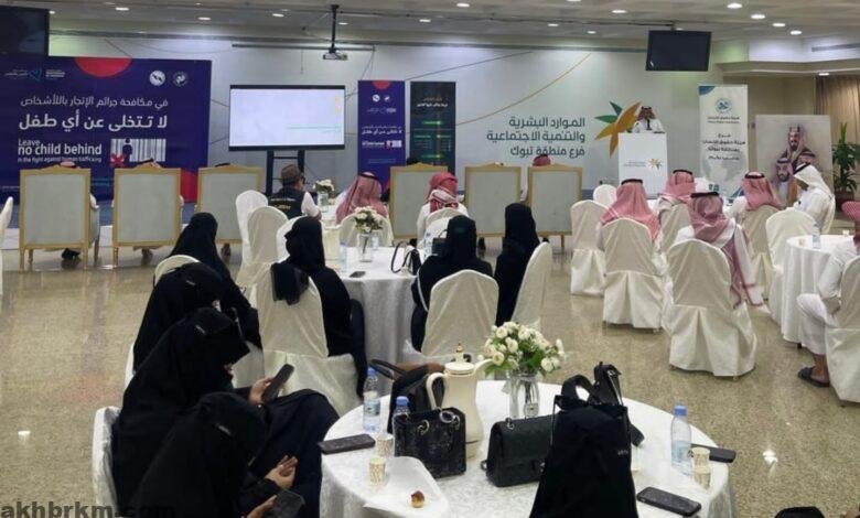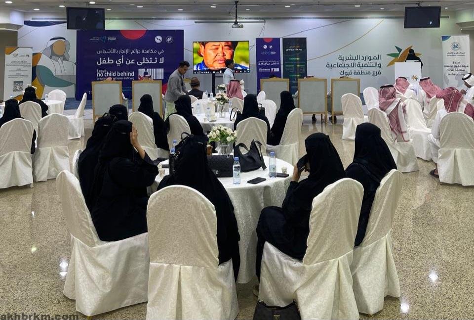 اقامت هيئة حقوق الإنسان صباح امس محاضرة توعويه بعنوان ( الإطار النظامي والمؤسسي لمكافحة جرائم الإتجار بالاشخاص ) في المملكة بالتعاون مع فرع وزارة الموارد البشرية والتنمية الاجتماعيه ممثلا بمكتب العمل بمنطقة تبوك وأستعرض من خلالها نظام مكافحة جرائم الاتجار بالأشخاص وأبرز جهود المملكة في مكافحة هذه الجريمة