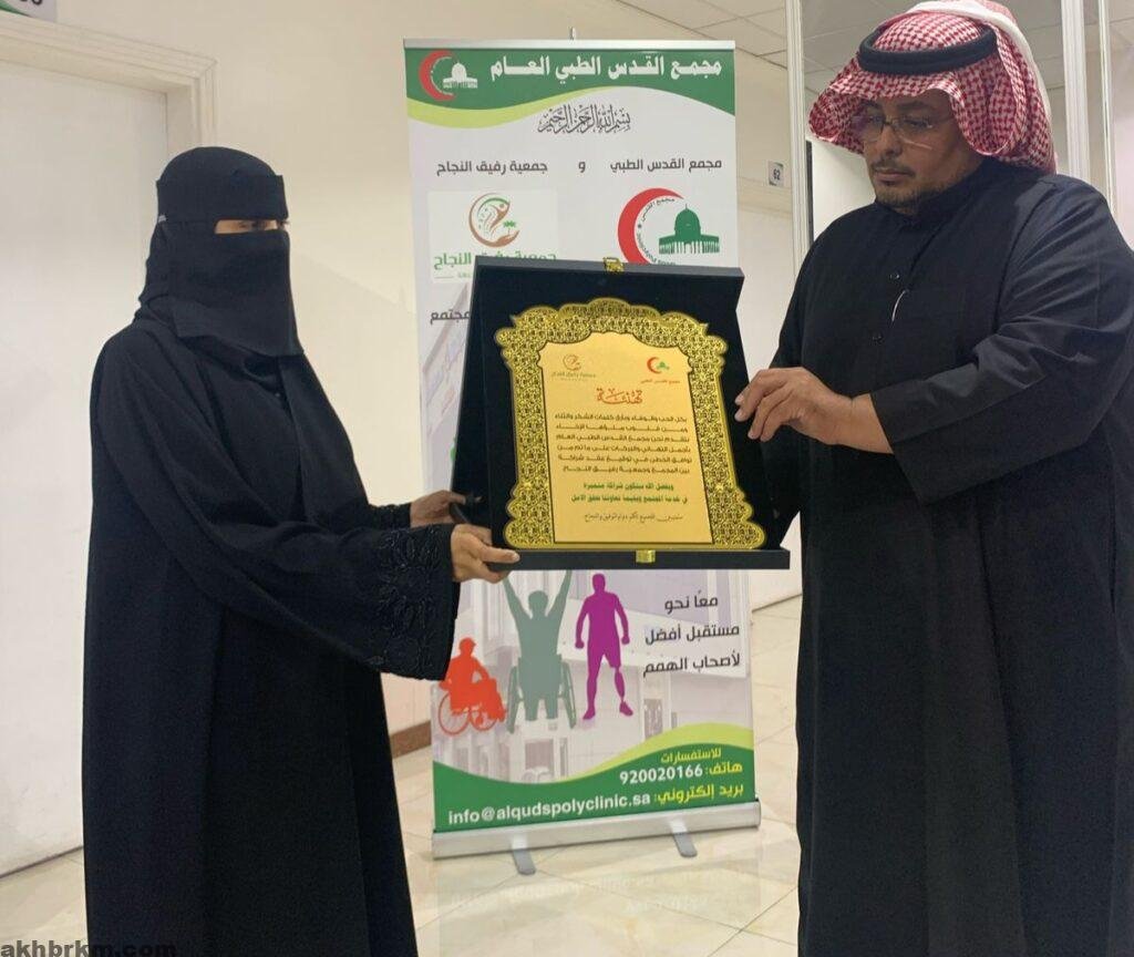 و في الختام قدم مدير مجمع القدس الطبي درعا تذكريا للجمعية .