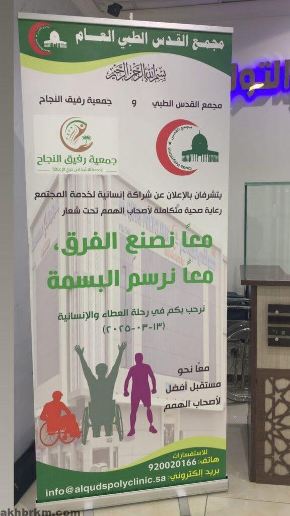 بشراكة مجتمعية مع مجمع القدس الطبي فعالية تحت عنوان ( صحتي في رمضان ) بهدف التوعية الصحية للحفاظ على السلامة العامة للجميع والسلامة الخاصة لذوي الإعاقة