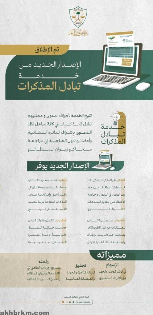 ديوان المظالم يُطلق إصدار جديداً من خدمة تبادل المذكرات