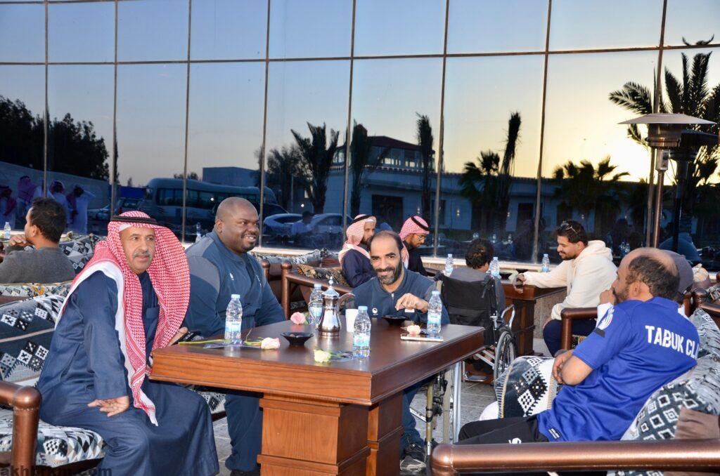 حيث شرف الفعاليه مدير فرع وزارة الرياضه بتبوك الاستاذ عبدالله الغامدي ورئيس مجلس ادارة النادي الاستاذ احمد عطيه الحارثي وذوي الإعاقة وأولياء أمورهم من الجنسين حيث تناول الجميع وجبة الإفطار.في اجواء يسودها المحبة والموده