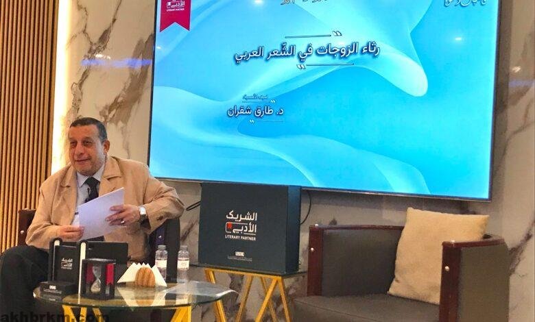 وتناولت الأمسية رثاء الزوجات في الشعر العربي حيث استعرض الدكتور طارق شقران أبرز القصائد التي كتبها كبار الشعراء مسلطًا الضوء على التجربة الشعورية العميقة التي صاحبت فقدان الزوجة وأثر ذلك على الإبداع الأدبي