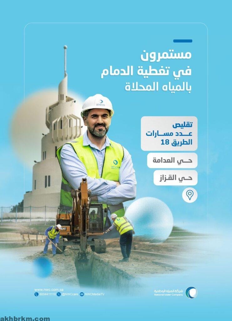 المياه الوطنية : إغلاق جزئي لشارع 18 بحي القزاز والعدامة لتنفيذ مشروع تحسين مياه الشرب بالدمام