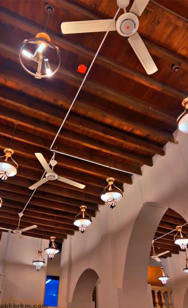 كما يتوسطه محراب خشبي أثري، ويتميز بمئذنته المربعة التي تعد من أقدم المآذن في المنطقة.