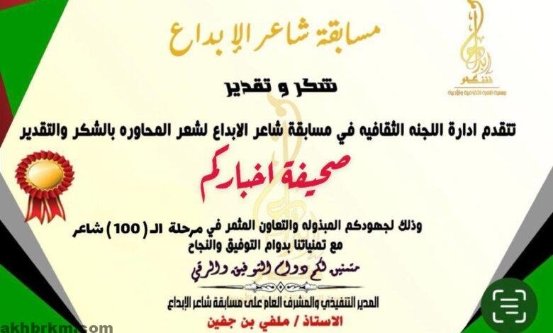 مسابقة “شاعر الإبداع” تشكر صحيفة “أخباركم” الإعلامية