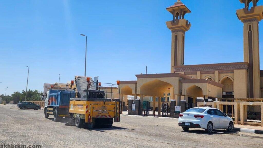 وشملت الجهود أعمال النظافة العامة، حيث تم غسيل الساحات المحيطة بالمساجد، وصيانة وغسيل ألعاب الأطفال في الواجهة البحرية والحدائق العامة، إضافة إلى تنظيف الشوارع والساحات، حيث بلغت كمية الكنس الآلي واليدوي أكثر من 3220 متر مكعب، مع استمرار تزويد دورات المياه بالمياه لضمان جاهزيتها. كما تمت إزالة 740 طنًا من النفايات المنزلية.