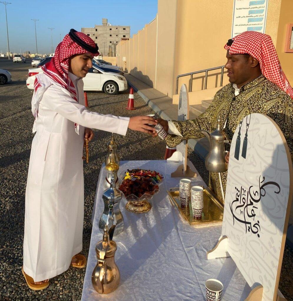 كما شمل الاحتفال تقديم الضيافة السعودية المتمثلة في القهوة والتمر، بحضور أولياء الأمور، وبمشاركة فعّالة من الكادر التعليمي والإداري، مما أضفى على الأجواء طابعًا وطنيًا واجتماعيًا أصيلًا.