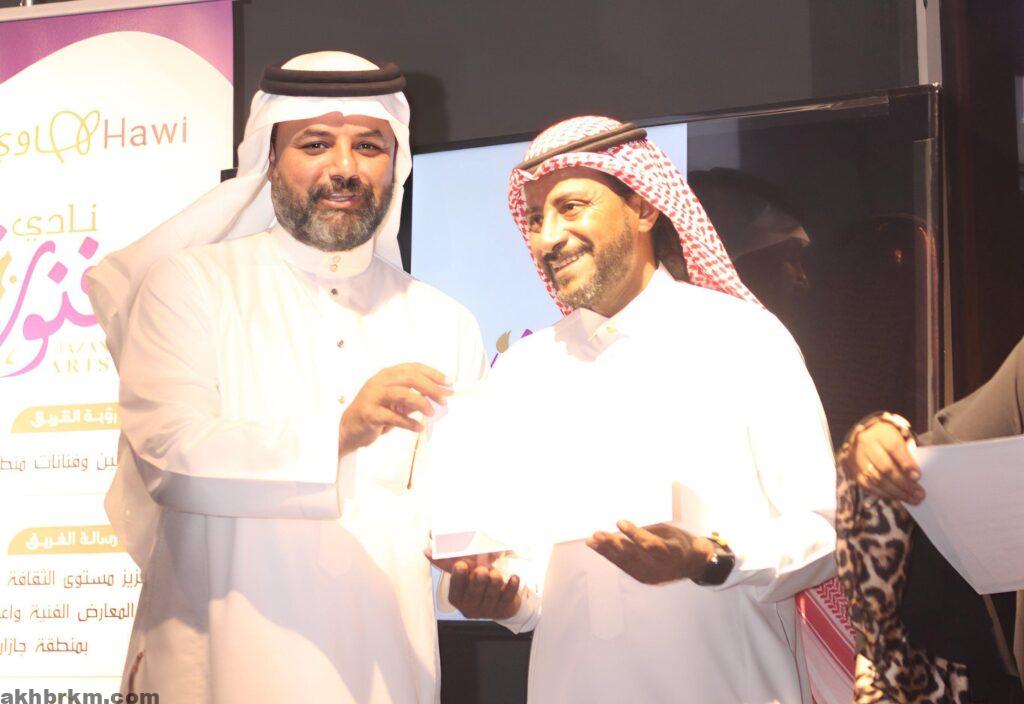 وفي ختام الحفل ، قامت إدارة نادي فنون جازان بتكريم المشاركين في المعرضين، حيث تم تسليمهم شهادات شكر و تقدير. كما تم تكريم الأستاذ حسن خبراني بدرع تذكاري على دعمه السخي للفن والفنانين بمعرض فعالية أرث وتكريم إدارة جمعية ضو للمسرح والفنون الأدائية لإستضافتهم.