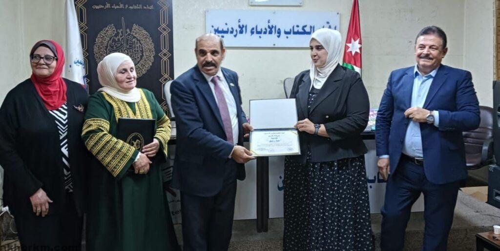 وفي ختام الحفل، كرّم الاتحاد الأديبتين فضية مقابلة وهبة رفيق بشهادتي تقدير، كما قدم الدكتور وائل عبد ربه، نائب رئيس الاتحاد ومدير دار يافا للنشر، درع تكريمي باسم الدار تقديراً لجهود مقابلة في خدمة التراث الأردني.