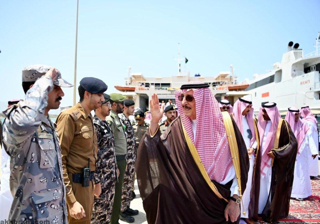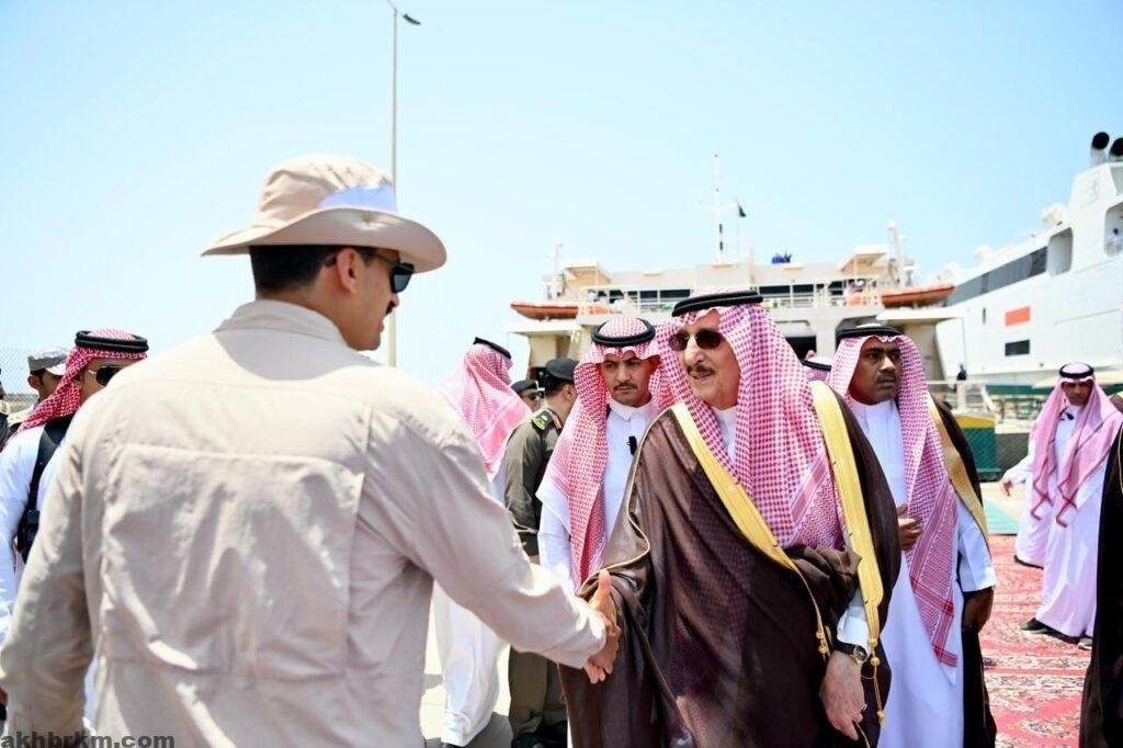 وكان سمو أمير منطقة جازان قد وصل في وقت سابق إلى محافظة جزر فرسان، حيث كان في استقباله بميناء فرسان محافظ جزر فرسان الأستاذ عبدالله بن محمد الظافري وعدد من المسؤولين، وذلك إيذانًا بانطلاق فعاليات مهرجان صيد سمك الحريد لهذا العام.