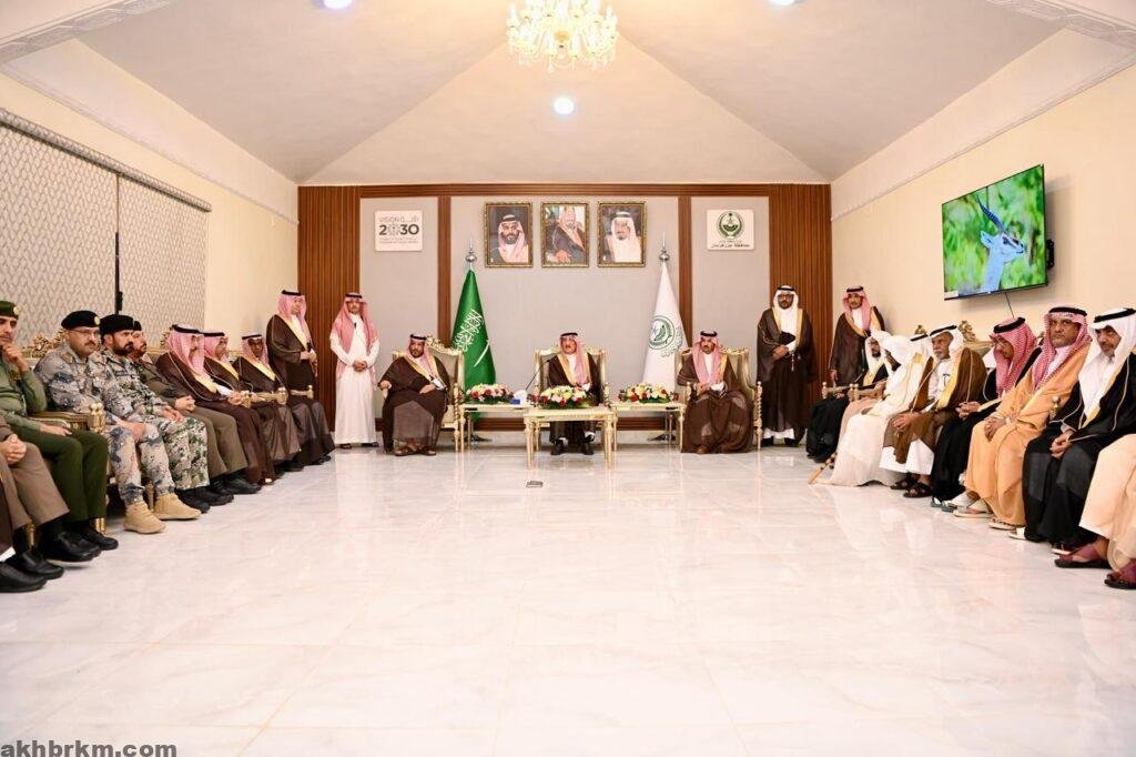 وفي كلمته خلال اللقاء، حمد سمو أمير المنطقة الله تعالى على نعمة الأمن والاستقرار والازدهار الذي تعيشه المملكة في ظل القيادة الرشيدة، مشيرًا إلى ما تشهده محافظة فرسان من نهضة متسارعة في مجالات البنية التحتية والسياحة، ومؤكدًا أن الجزر مقبلة -بمشيئة الله- على مستقبل مشرق يحمل في طياته الكثير من فرص التنمية والاستثمار والتطوير السياحي.