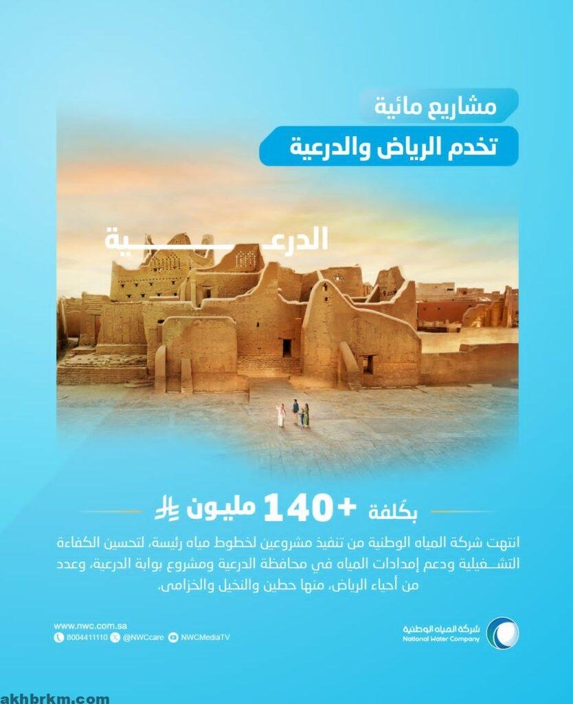 بأكثر من 140 مليون ريال.. “المياه الوطنية” تُعزز البنية التحتية في الدرعية بمشروعات استراتيجية