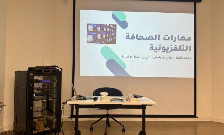 وقدّم الورشة الإعلامي محمد عثمان، مراسل قناتي “الإخبارية” و”السعودية”، حيث استعرض خلالها تجربته الميدانية الواسعة، وناقش عددًا من المحاور المهمة، منها: كتابة النص التلفزيوني، ومهارات التقديم أمام الكاميرا، واستخدام الهاتف المحمول في التغطيات السريعة، إضافة إلى التكيّف مع متطلبات المنصات الرقمية.