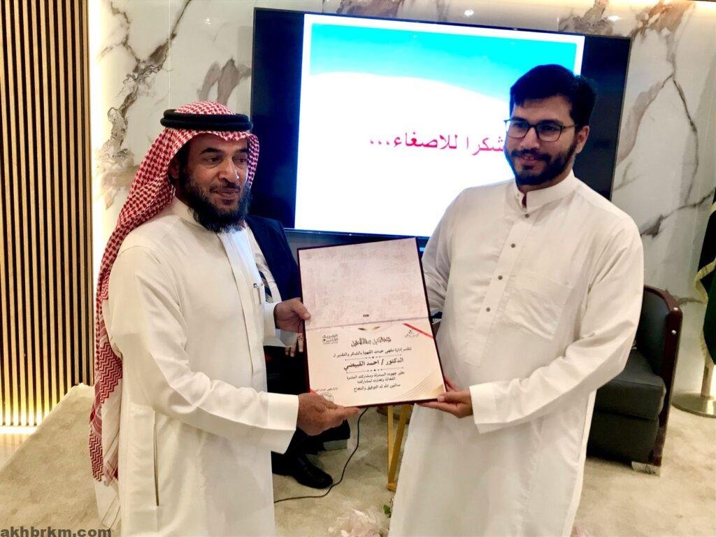 وفي ختام الأمسية، قام الأستاذ محمد العصيمي بتكريم الدكتور طارق شقران والدكتور أحمد القبيضي، تقديرًا لمشاركتهما وإثرائهما للقاء، وسط تصفيق الحضور وتقديرهم لمحتوى الأمسية.