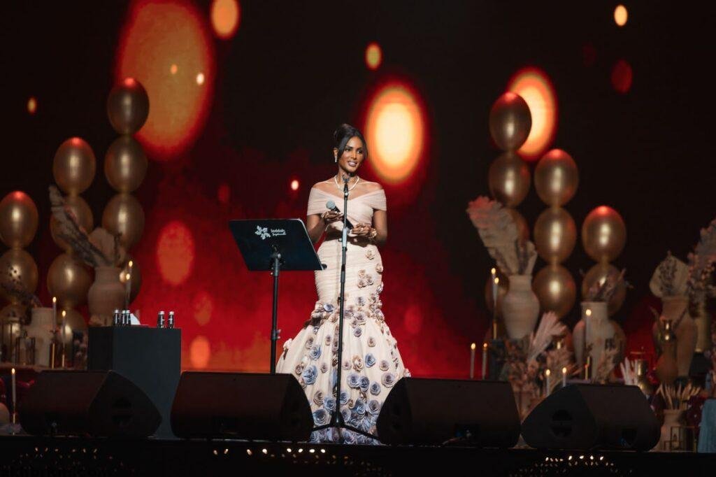 انطلقت السهرة الفنية بفقرة تهاني السلطان، التي ألهبت حماس الحضور في أول حفل لها بمدينة جدة، وسط تفاعل كبير وتصفيق متواصل من الجمهور الذي استقبلها بحرارة.
