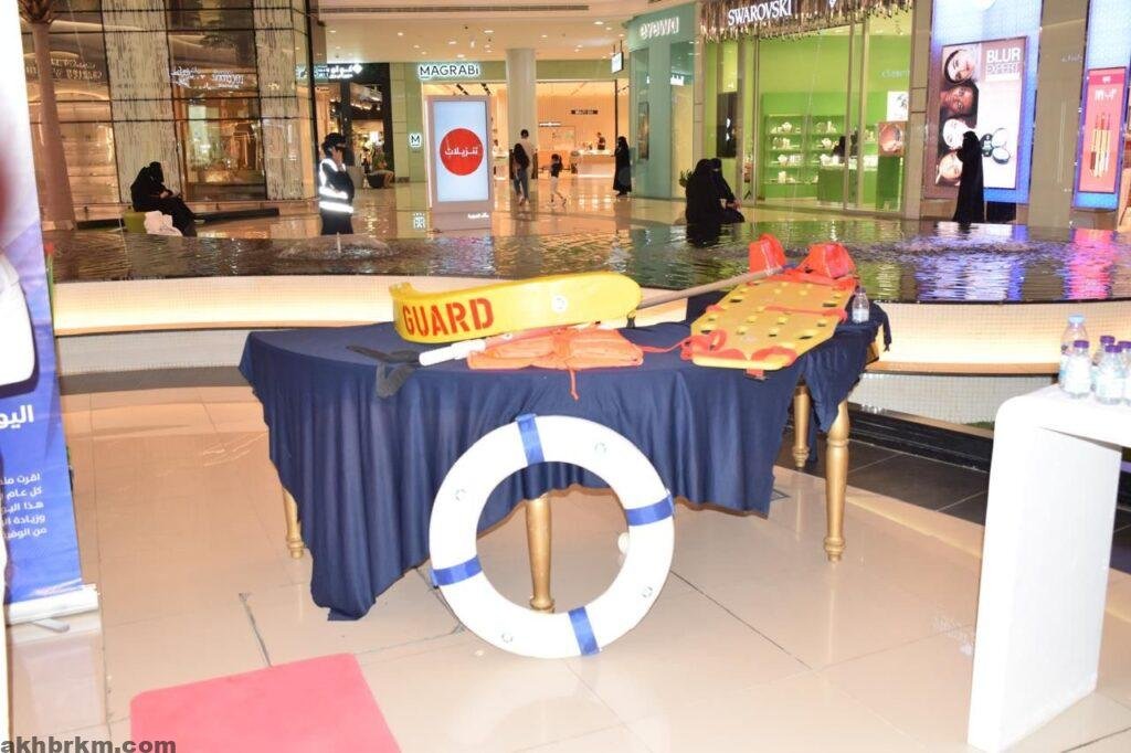 وشملت الفعالية معرض توعوي عن أنظمة السلامة في المسابح والشواطئ وطرق الوقاية من الغرق وأركان تحتوي أدوات السلامه وعروض لتقديم الإسعافات الأولية في حالات الغرق، وأخرى للتوعية وعدم ترك الأطفال دون رقابة وأهمية تواجد المنقذين أثناء السباحة وتعزيز الوعي لدى العامه والتوعية الى أهمية السلامة في المسابح والشواطئ والوقاية من خطر الغرق وكيفية التصرف في حالات الطوارئ، وتقديم الإسعافات الأولية