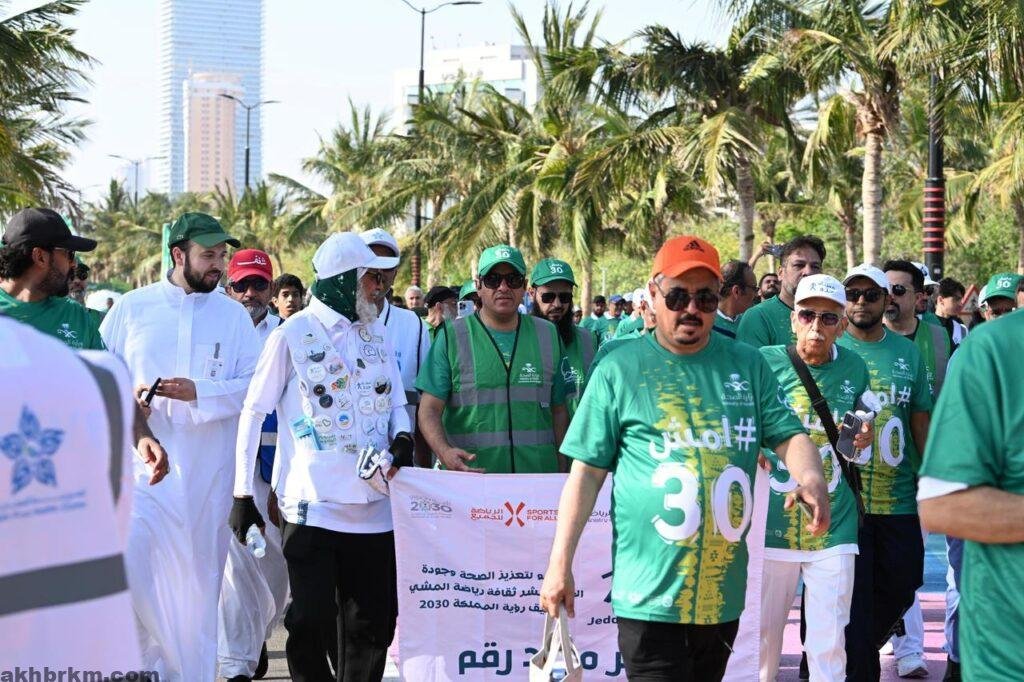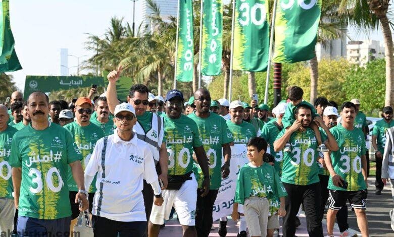 برعاية صاحب السمو الأمير سعود بن عبدالله بن جلوي، محافظ جدة، دشّن فرع وزارة الصحة بمحافظة جدة مبادرته المجتمعية الرائدة “امشِ 30”، بالتعاون مع التجمعات الصحية بالمحافظة وعدد من القطاعات الحكومية والخاصة والقطاع غير الربحي، وذلك بحضور مدير فرع الوزارة الدكتور مشعل بن مسفر السيالي، وعدد من القيادات الصحية، إلى جانب حضور كبير من أهالي وسكان مدينة جدة.