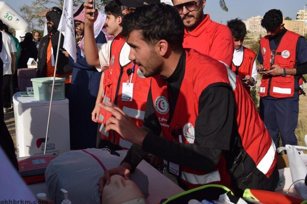 وضمن فعاليات الحدث، نفّذ الهلال الأحمر مبادرة “خطوة ومهارة”، التي تهدف إلى تعليم المهارات الأساسية في الإسعافات الأولية عبر أربع محطات تدريبية، شملت: الإنعاش القلبي الرئوي، إيقاف النزيف، استخدام جهاز الصدمات القلبية، والتعامل مع حالات الاختناق. وقدّم التدريب مختصون معتمدون في مجال الإسعافات الأولية.