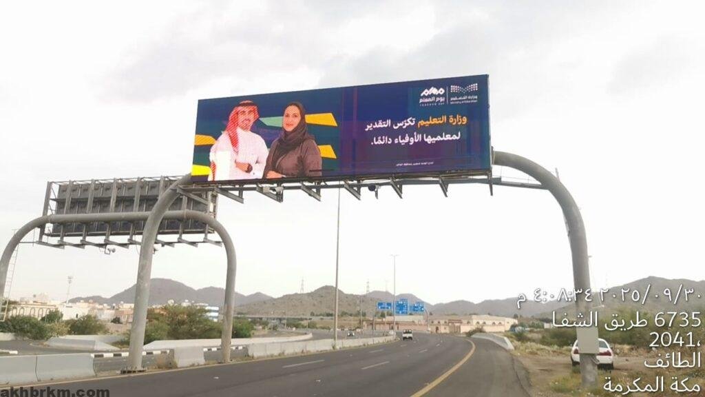 “تعليم الطائف” تحتفي بالمعلمين والمعلمات في اليوم العالمي للمعلم 2025 ورسائل تهنئة على الشاشات الإلكترونية في الشوارع