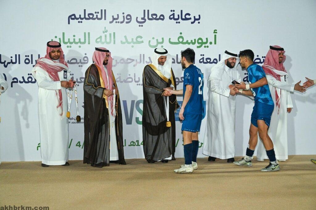 برعاية معالي وزير التعليم الأستاذ يوسف بن عبدالله البنيان، وبحضور سعادة رئيس جامعة الإمام عبدالرحمن بن فيصل المكلف الأستاذ الدكتور فهد بن أحمد الحربي، وسعادة الدكتور خالد المزيني رئيس الاتحاد السعودي للرياضة الجامعية، تُوّج منتخب جامعة الإمام عبدالرحمن بن فيصل ببطولة الاتحاد السعودي للرياضة الجامعية لكرة القدم (أ).