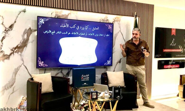 في أمسية ثقافية جمعت بين عبق التراث الأدبي وسحر الشعر، نظم مقهى حبات القهوة – الشريك الأدبي لهيئة الأدب والنشر – ندوة أدبية بعنوان “العشق في التراث الأدبي”، قدّمها الدكتور إسماعيل نحاس، استشاري جراحة الوجه والفكين والمهتم بالشأن الثقافي والأدبي، وذلك بحضور نخبة من المثقفين والأدباء والمهتمين بالشعر والفكر العربي.