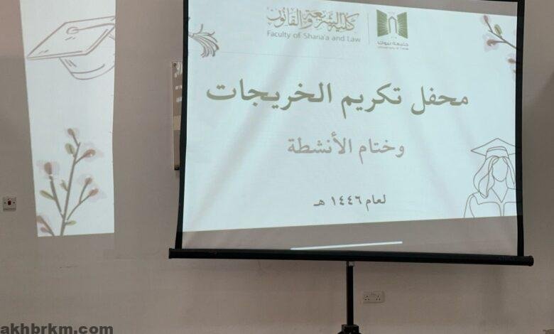 كلية الشريعة والقانون . شطر الطالبات تحتفي باختتام الأنشطة وتكريم الخريجات