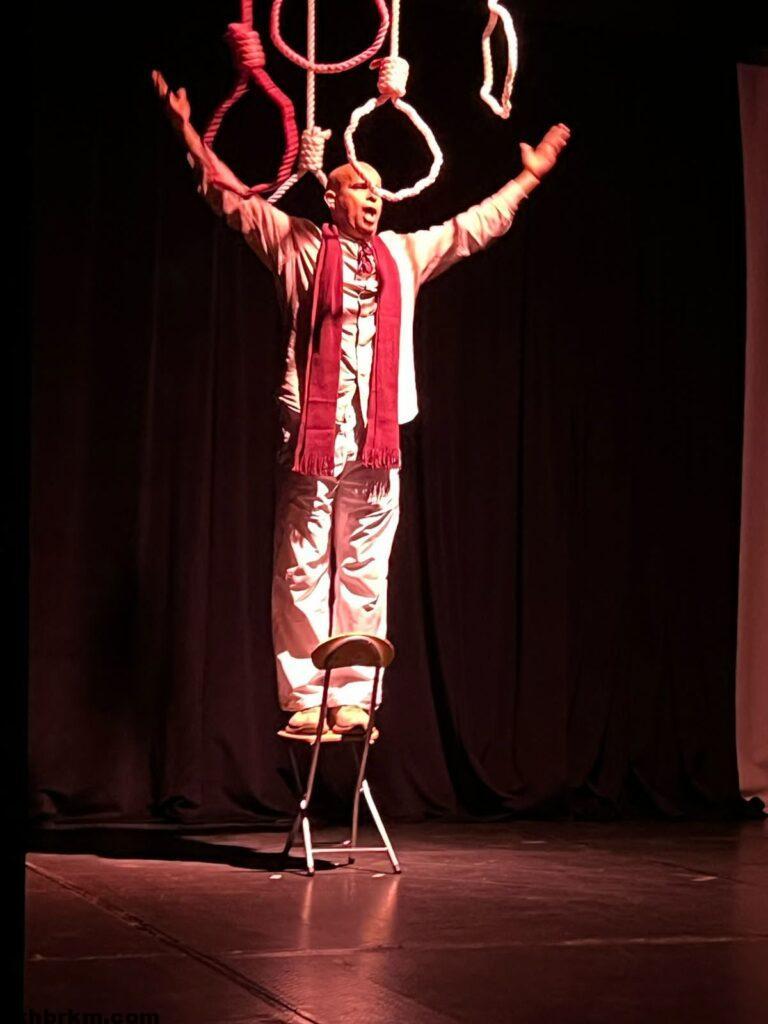 وقدّم الفنان مساعد الزهراني أداءً لافتاً في أول ظهور تمثيلي له بعد غياب دام عشر سنوات، تفرغ خلالها للإخراج المسرحي، ليعود على الخشبة بنص كتب خصيصًا له من تأليف صالح زمانان، وإخراج عبدالعزيز عسيري الذي صاغ من خلاله قضايا إنسانية مجتمعية في قالب درامي مؤثر.