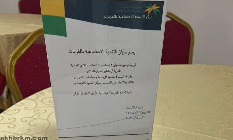 مركز التنمية الاجتماعية بالقريات يطلق دورة “أساسيات الحاسب الآلي “