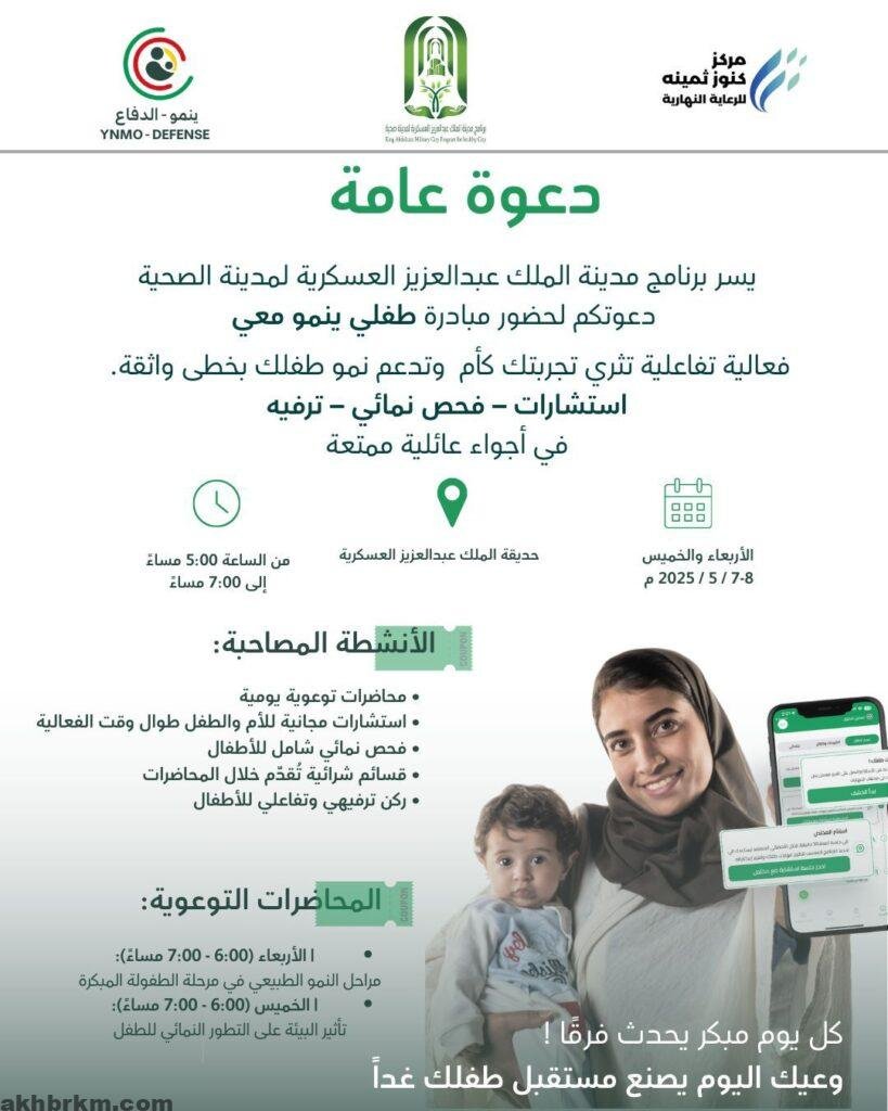 مدينة الملك عبدالعزيز العسكرية تطلق مبادرة (طفلي ينمو معي) لتعزيز نمو الطفل وتوعية الأسرة”