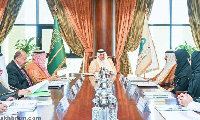 واطلع سموه خلال الاجتماع على التقرير السنوي للجامعة، كما تمّت الموافقة على استحداث عدد من البرامج الأكاديمية الجديدة، شملت برنامج البكالوريوس في هندسة السلامة المهنية، وبرنامج البكالوريوس في التمريض.