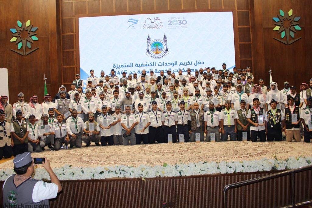 وتضمن الحفل عرضًا مرئيًا بعنوان (قصة النجاح والتميز في الحج)، جسد أبرز ملامح النجاح لمعسكرات الخدمة العامة خلال موسم الحج، وجرى في ختام الاحتفال توزيع جوائز التكريم على الوحدات الكشفية المتميزة من مختلف قطاعات الجمعية بمناطق ومحافظات المملكة.