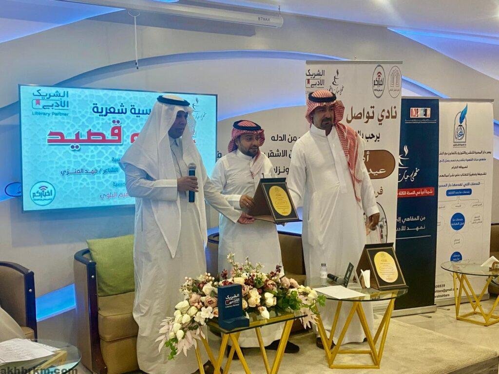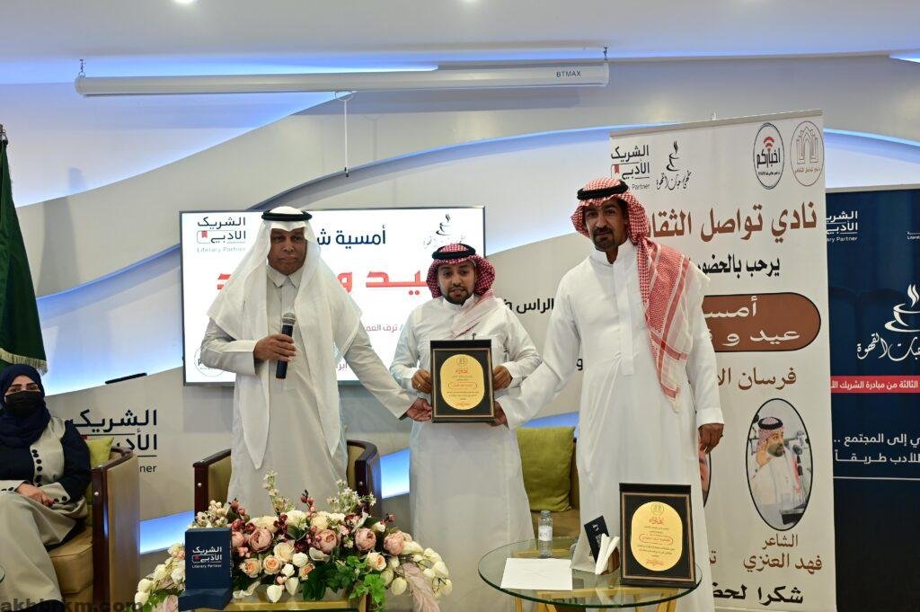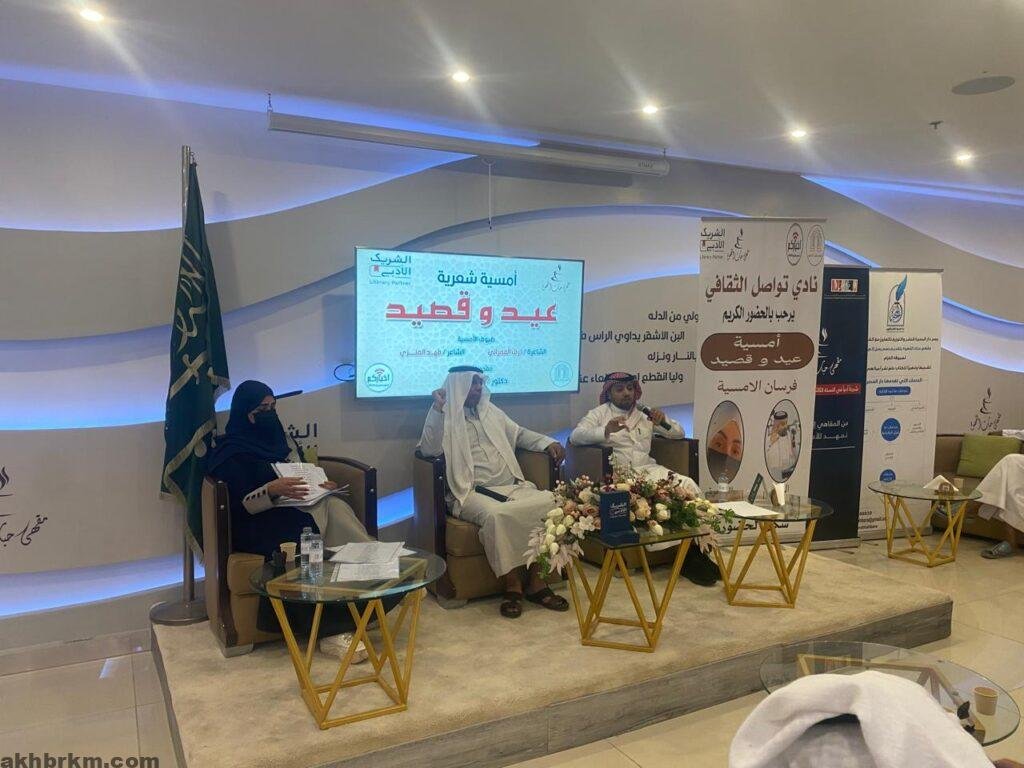 في الأمسية الشعرية الاولي (عيد وقصيد) التي ينضمها نادي تواصل الثقافي ضمن سلسلة أمسياته الشعرية والأدبية التي يحتضنها مقهي حبات القهوة (الشريك الأدبي )الذي يحضى بدعم هيئة الأدب والنشر والترجمةحضر الشعر بأسلوب يختلف هذه المره عن النمطية السائدة حينما جمع بين الشعر الفصيح والشعر الشعبي ليرضي بذلك كافة عشاق الشعر العربي بقسميه .