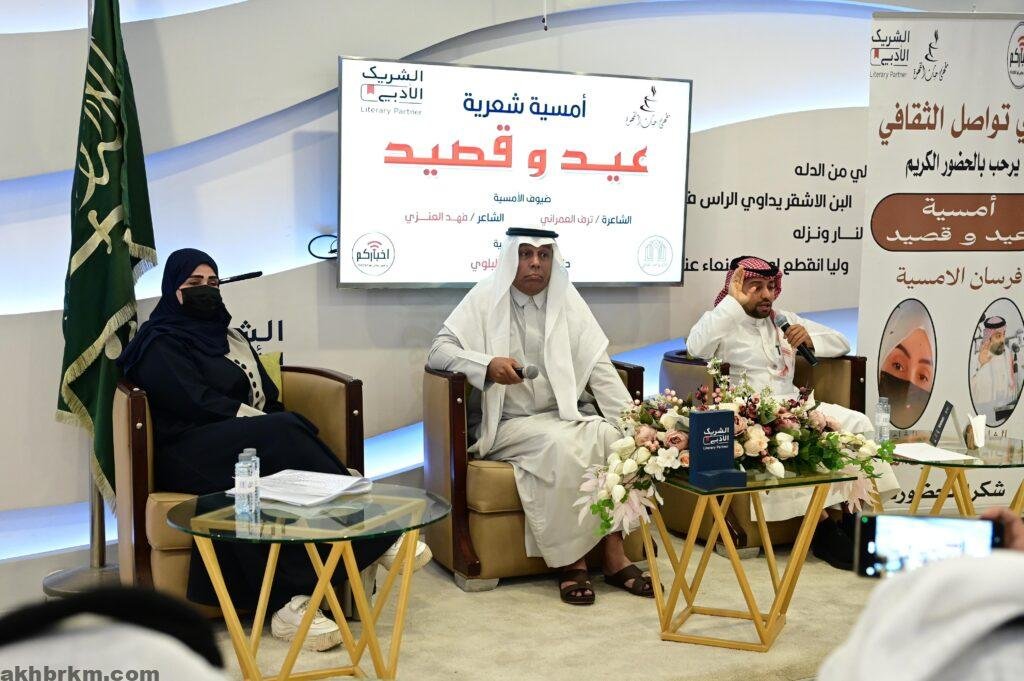 استهلت الأمسية (عيد وقصيد ) التي قدمها للحضور الدكتور إبراهيم التلفيه بنبذه عن فرسان هذه الأمسية الشاعر فهد العنزي والشاعرة والأديبة ترف العمراني قبل أن يبحر مع فرسانها في روائعهم الشعرية التي تنوعت مابين حب الوطن والوجدانيات والغزل والعتاب والأحاسيس والمشاعر .
