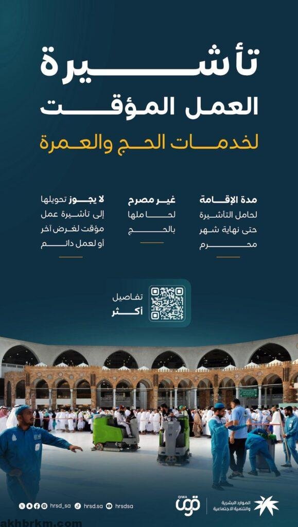أعلنت وزارة الموارد البشرية والتنمية الاجتماعية عن تنفيذ عدد من التنظيمات الجديدة الخاصة بتأشيرات العمل المؤقت، ضمن جهودها لتعزيز جاهزية سوق العمل لموسم حج 1446هـ، وتلبية احتياجات منشآت القطاع الخاص العاملة في خدمات الحج والعمرة.